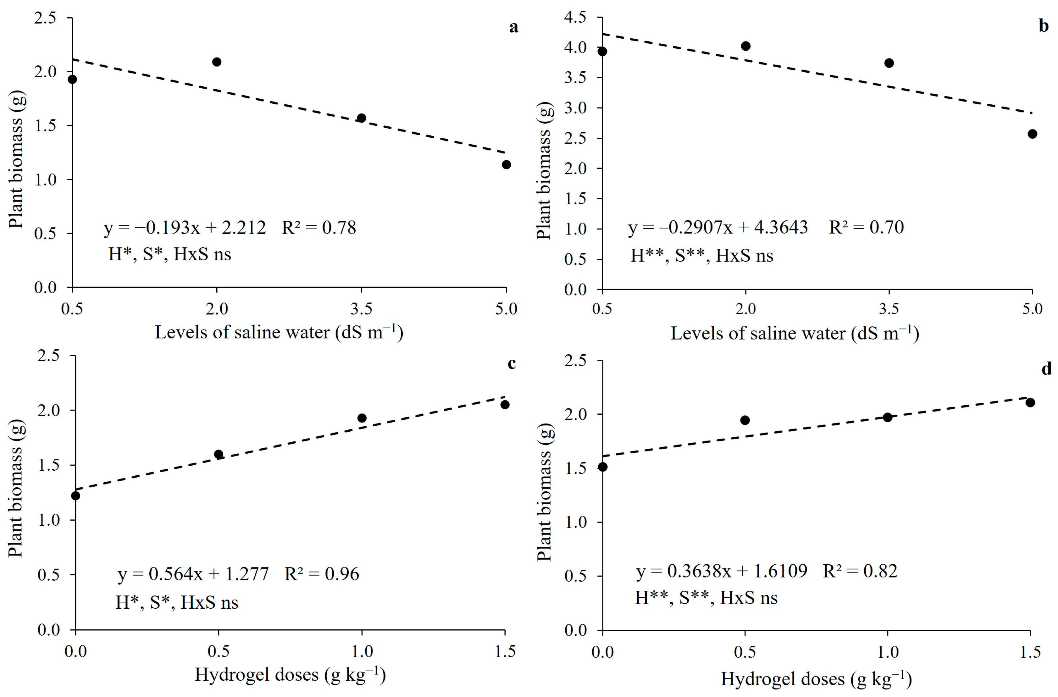 - Nascimento, C.D.V.; Feitosa, J.P.A.; Simmons, R.; Dias, C.T.S.; Nascimento, I.V.; Mota, J.C.A.; Costa, M.C.G. Durability indicatives of hydrogel for agricultural and forestry use in saline conditions. J. Arid. Environ. 2021, 195, 104622. [Google Scholar] [CrossRef]