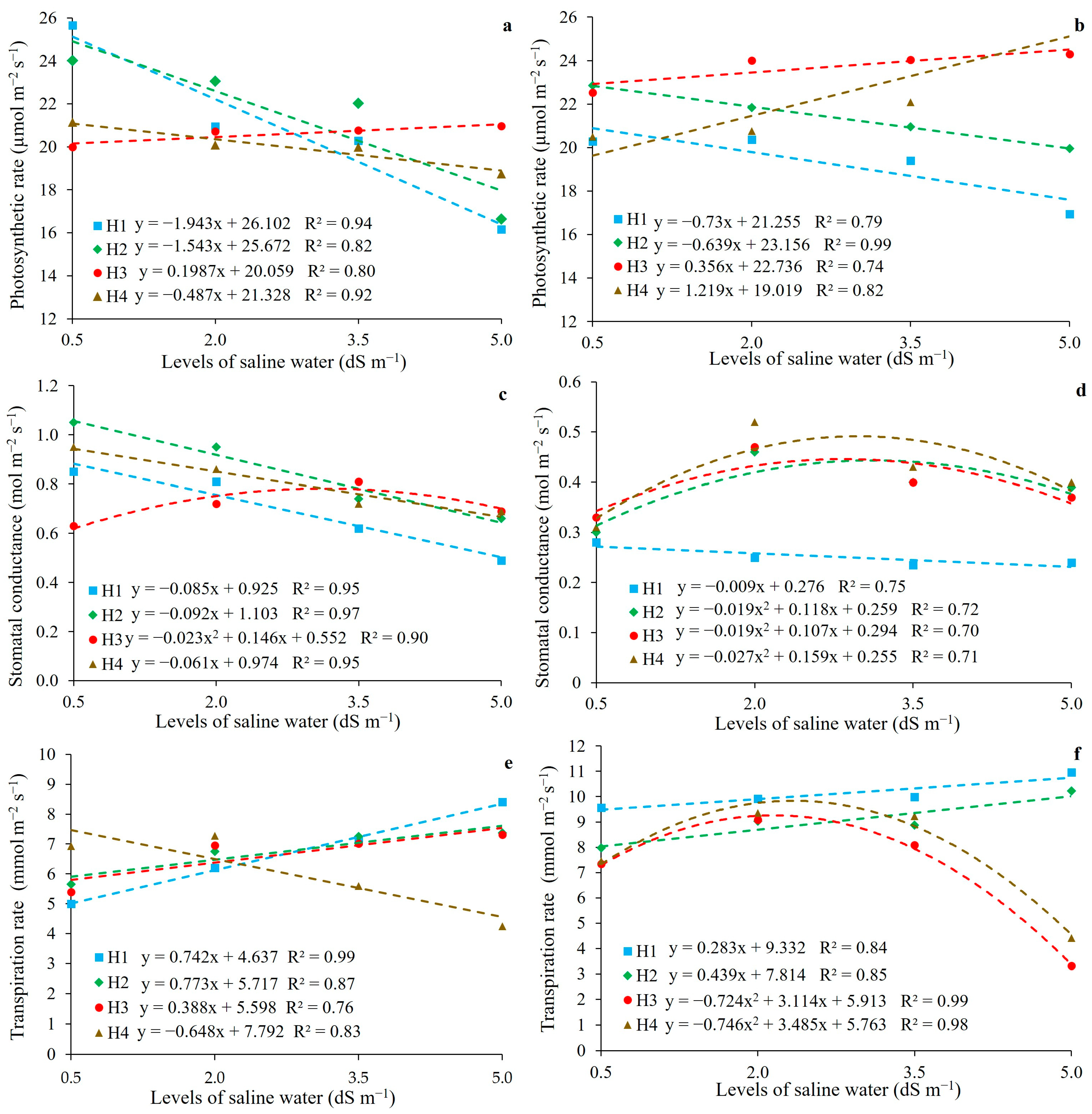 - Zhu, C.; Huang, M.; Zhai, Y.; Zhang, Z.; Zheng, J.; Liu, Z. Response of gas exchange and chlorophyll fluorescence of maize to alternate irrigation with fresh- and brackish water. Acta Agric. Scand. Sect. B Soil Plant Sci. 2017, 67, 474–484. [Google Scholar] [CrossRef]