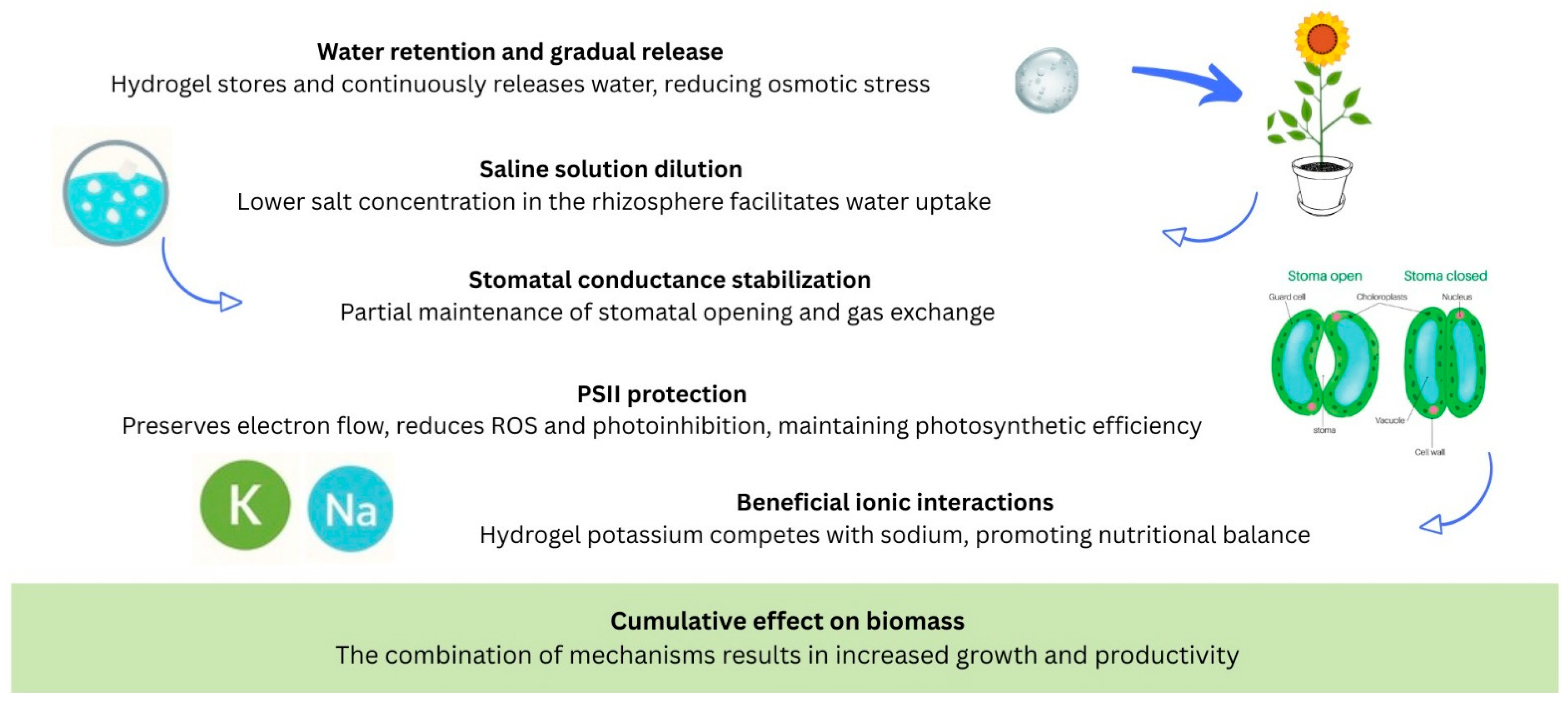 - Agbna, G.H.D.; Zaidi, S.J. Hydrogel Performance in Boosting Plant Resilience to Water Stress—A Review. Gels 2025, 11, 276. [Google Scholar] [CrossRef]