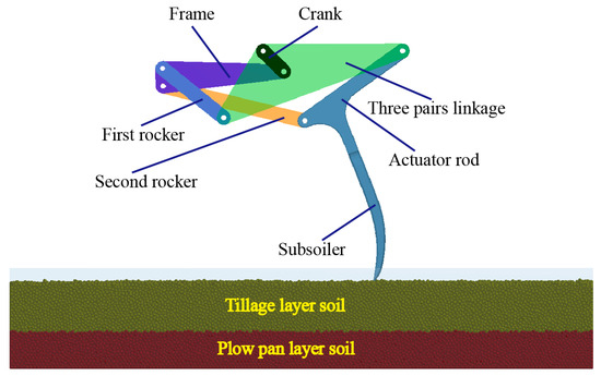 With reference to the assembled six-bar subsoiling mechanism model prototype in Solidworks, an indoor soil bin test was conducted (