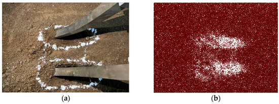 Figure 17). In accordance with the design scheme of the discrete element soil model, the length, width, and height of the indoor soil bin were set to 100 cm, 60 cm, and 35 cm, respectively. Appropriate amounts of cultivated layer soil and plough pan soil were excavated from the test field. During the filling of the soil bin, 15 cm thick plough pan soil was first added and squeezed down to 12 cm thick with a wooden board to simulate the compact and hard characteristics of the plough pan soil, and then 18 cm thick cultivated layer soil was placed into the soil bin.