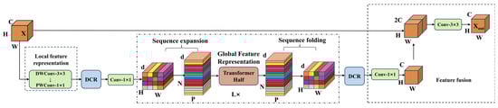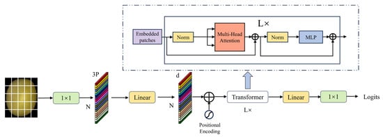 In MobileViT, the Transformer enhances the model’s global context modeling capabilities through self-attention mechanisms. Deep features are fused with global semantic information through a lightweight Transformer module design, while the position-aware characteristics inherent in convolutions are used to replace explicit position encoding, thereby significantly improving the model’s global feature expression capabilities. However, the self-attention mechanism requires calculating the similarity of all position pairs in the input sequence, which not only results in high computational complexity but also necessitates stacking multiple attention layers for certain tasks, leading to high cumulative computational costs and significant increases in computational load and parameter count. To address this, this study proposes a dimension reconstruction method called THD (Transformer Half-Dimension) to improve the Transformer architecture. The input feature dimension of the Transformer module is reduced to half of the original channel count. First, 1 × 1 convolution is used for channel compression, followed by lightweight multi-head attention calculation in the low-dimensional space. Then, 1 × 1 convolution is used to restore the original channel count (as shown in Figure 12).