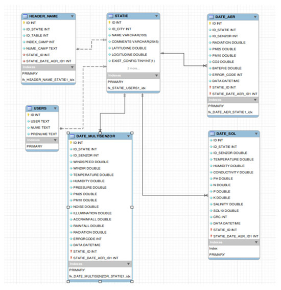 - The Air Data (DATE_AER) table stores atmospheric measurements, including solar radiation, PM2.5, PM10, and CO2 levels.