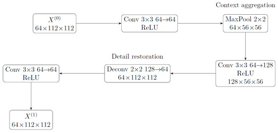 Stage 3 is a scale-aware encoder–decoder that aggregates wider context at a coarser scale and then restores details at the original resolution, producing cleaner boundaries and textures under a tiny parameter budget. Concretely, let X(0) ∈ RN × 64 × 112 × 112 denote the calibrated features from the MCP-X block.