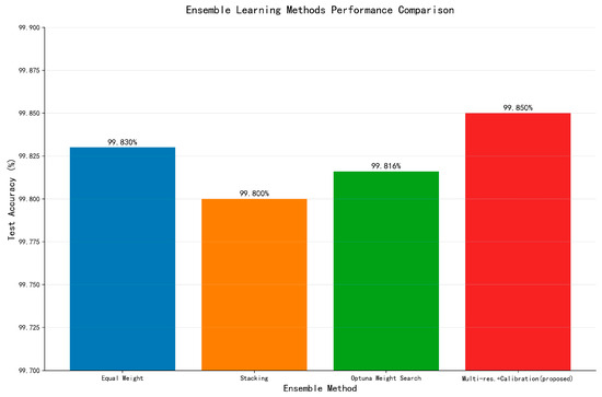 Although evaluated on the curated PlantVillage dataset, MCP-X’s multi-branch feature extraction captures varied lesion textures, and the ECA module prioritizes disease-relevant channels, suggesting potential resilience to real-world variations. When integrated into an ensemble framework, it addresses performance challenges, achieving 99.85% accuracy. Future evaluations on additional “in-the-wild” datasets, such as PlantCLEF, will further substantiate MCP-X’s generalization under challenging conditions [22,23].