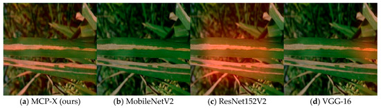 - Absence of Pixel-Level Segmentation: MCP-X currently provides image-level classifications without pixel-level segmentation, which is crucial for quantifying disease severity and enabling precision interventions, such as targeted pesticide application. Integrating multi-task heads for segmentation represents a promising avenue for future research [1,25].
