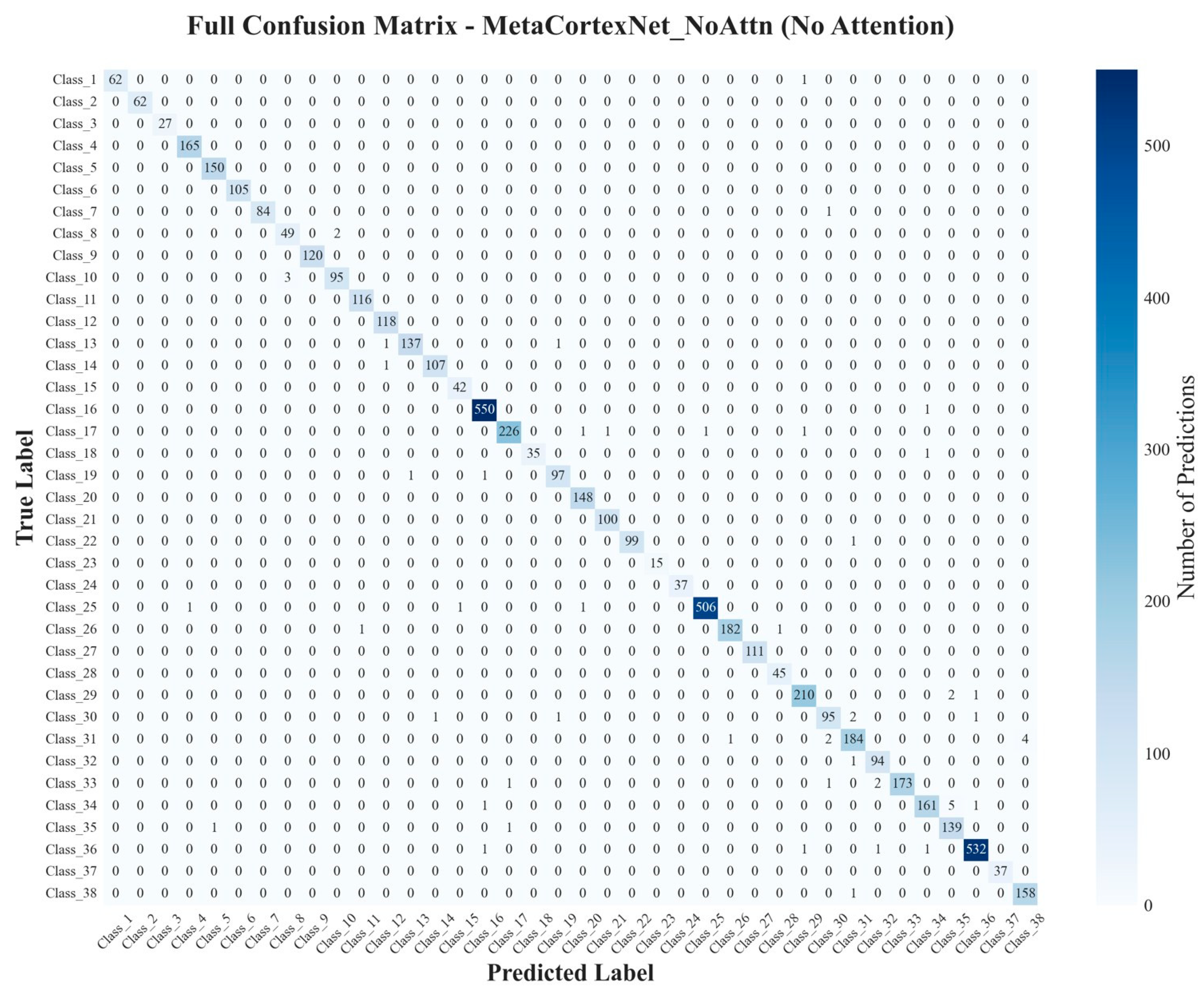 Although evaluated on the curated PlantVillage dataset, MCP-X’s multi-branch feature extraction captures varied lesion textures, and the ECA module prioritizes disease-relevant channels, suggesting potential resilience to real-world variations. When integrated into an ensemble framework, it addresses performance challenges, achieving 99.85% accuracy. Future evaluations on additional “in-the-wild” datasets, such as PlantCLEF, will further substantiate MCP-X’s generalization under challenging conditions [