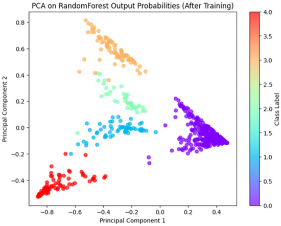 An illustration of the PCA of Random Forest output probabilities for our dataset.
