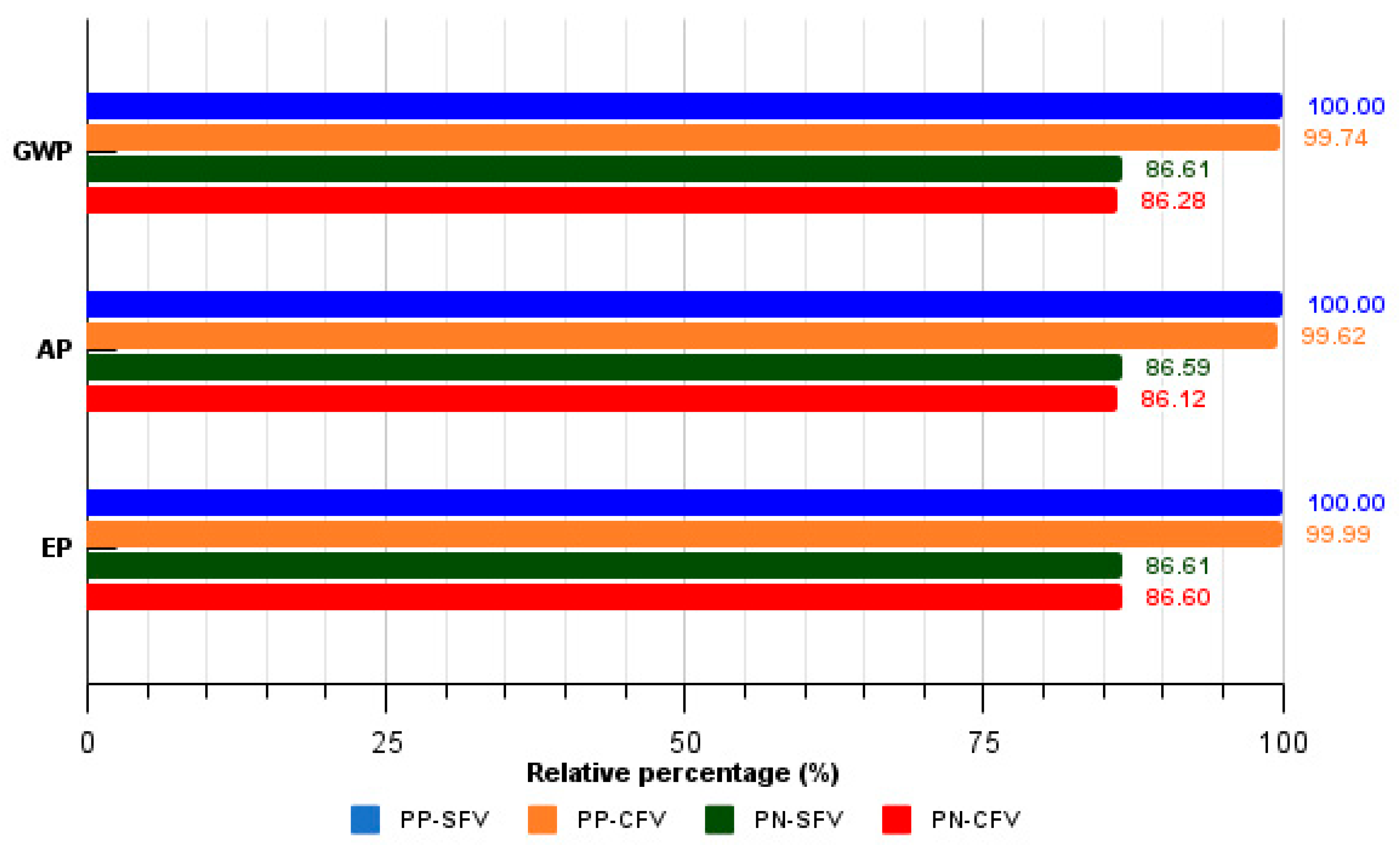 | Study Scenario | Impact Category | Acidification Potential (AP) | Eutrophication Potential (EP) | Global Warming Potential (GWP) |