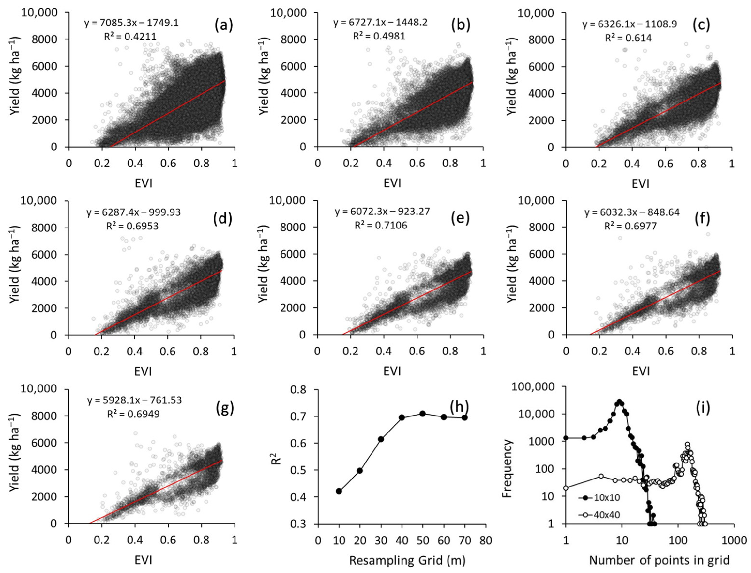 3.3. Resampling Grid for Yield and VI Maps