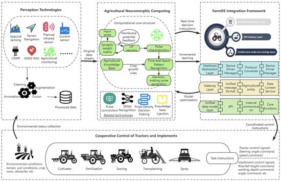 - We propose an integrated cooperative control ecosystem combining neuromorphic computing and FarmOS to overcome real-time coordination bottlenecks.