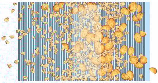 - Hu, G.; Chen, X.; Zhao, T.; Dong, Y.; Liu, G.; Zhou, J. Optimization of grading process of walnut shell and kernel mixture by vibrating screen based on EDEM. China Oils Fats 2024, 49, 95–100. [Google Scholar] [CrossRef]