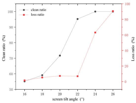 The influence of the screen tilt angle on the clean rate and loss rate.