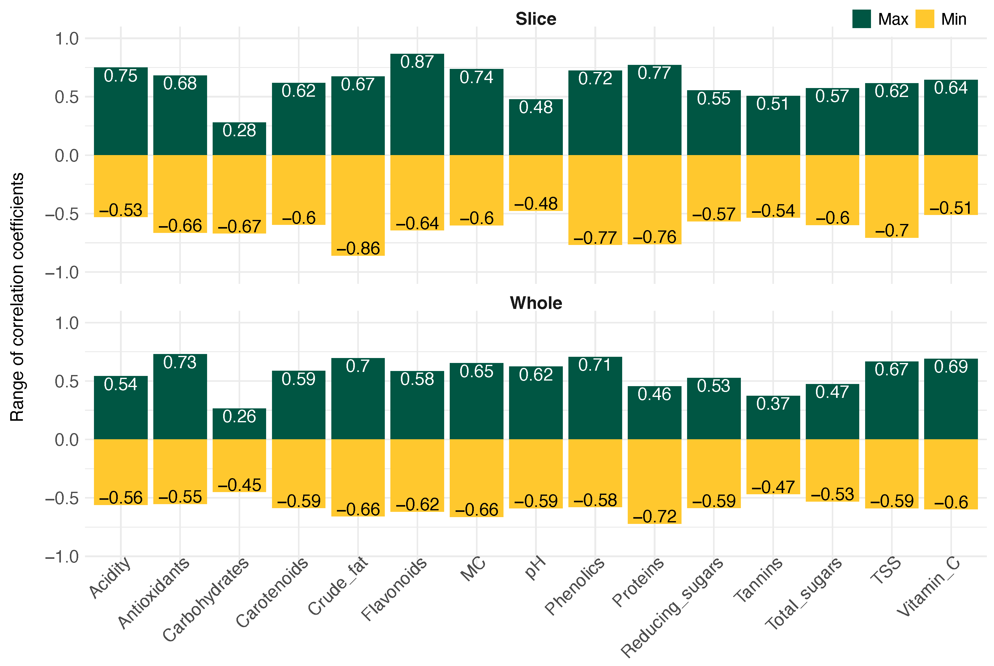 3.5. Correlation Analysis of Wet Chemistry and Image-Based Parameters—Value Ranges