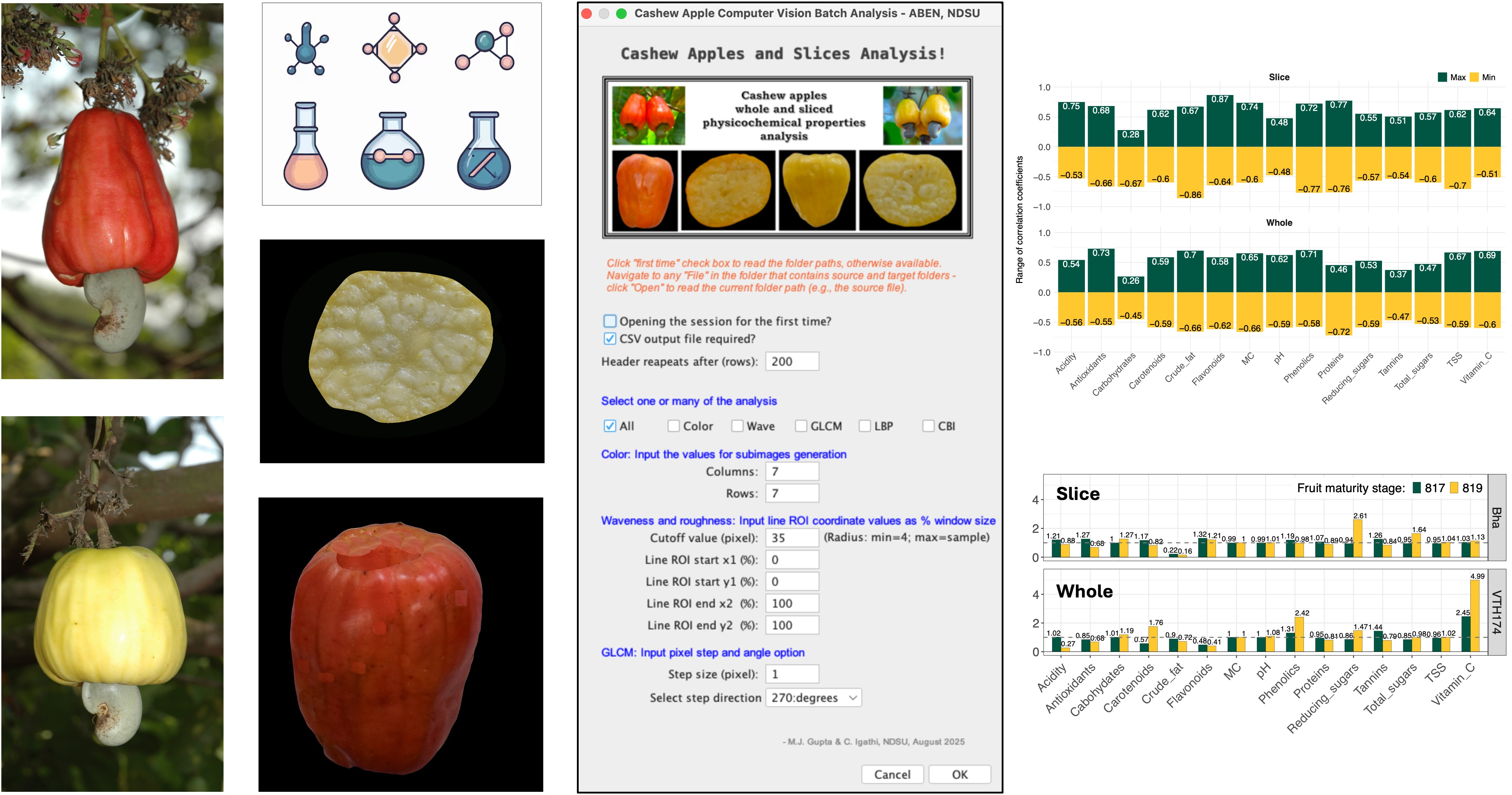 Gupta MJ, Igathinathane C, Nishad J, Tazeen H, Joice A, Sunoj S, Mohan A, Kumar P, Adiga JD. Assessment of Physicochemical Properties of Cashew Apple Through Computer Vision. AgriEngineering. 2025; 7(12):398. https://doi.org/10.3390/agriengineering7120398