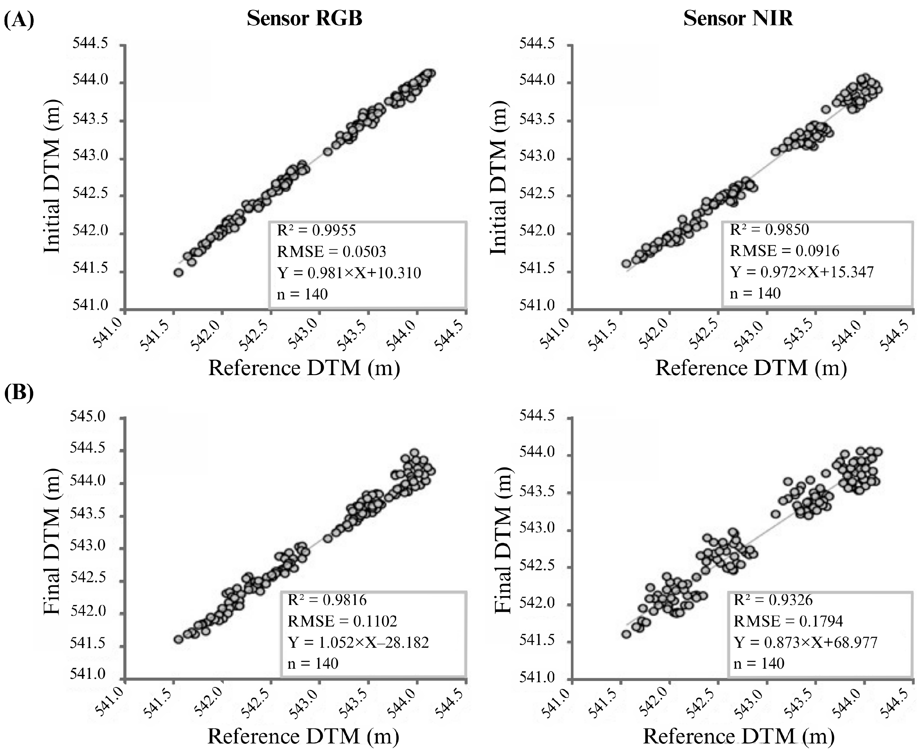 | Initial NIR DTM + RGB DSM | 0.94 | 0.89 | 0.28 | 10.70 |