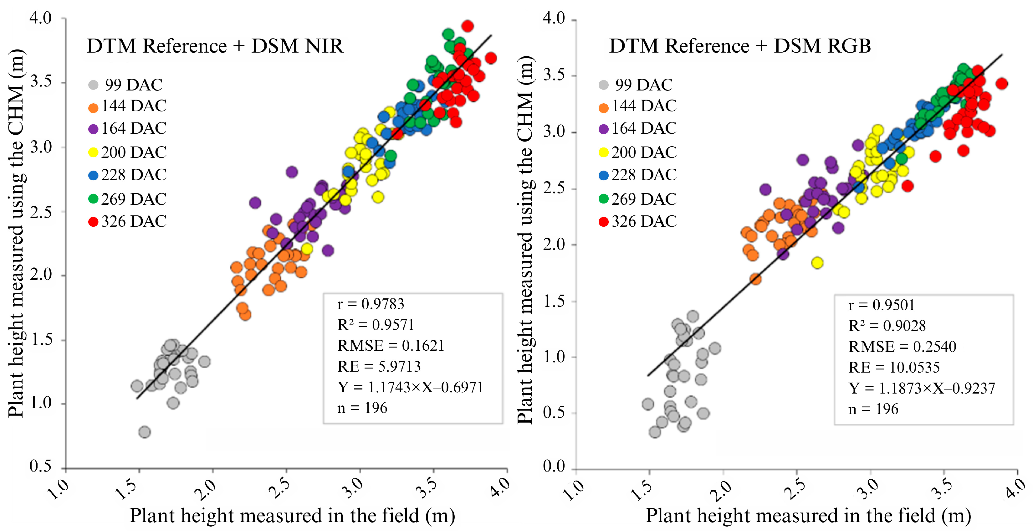 - Niu, Y.; Han, W.; Zhang, H.; Zhang, L.; Chen, H. Estimating maize plant height using a crop surface model constructed from UAV RGB images. Biosyst. Eng. 2024, 241, 56–67. [Google Scholar] [CrossRef]