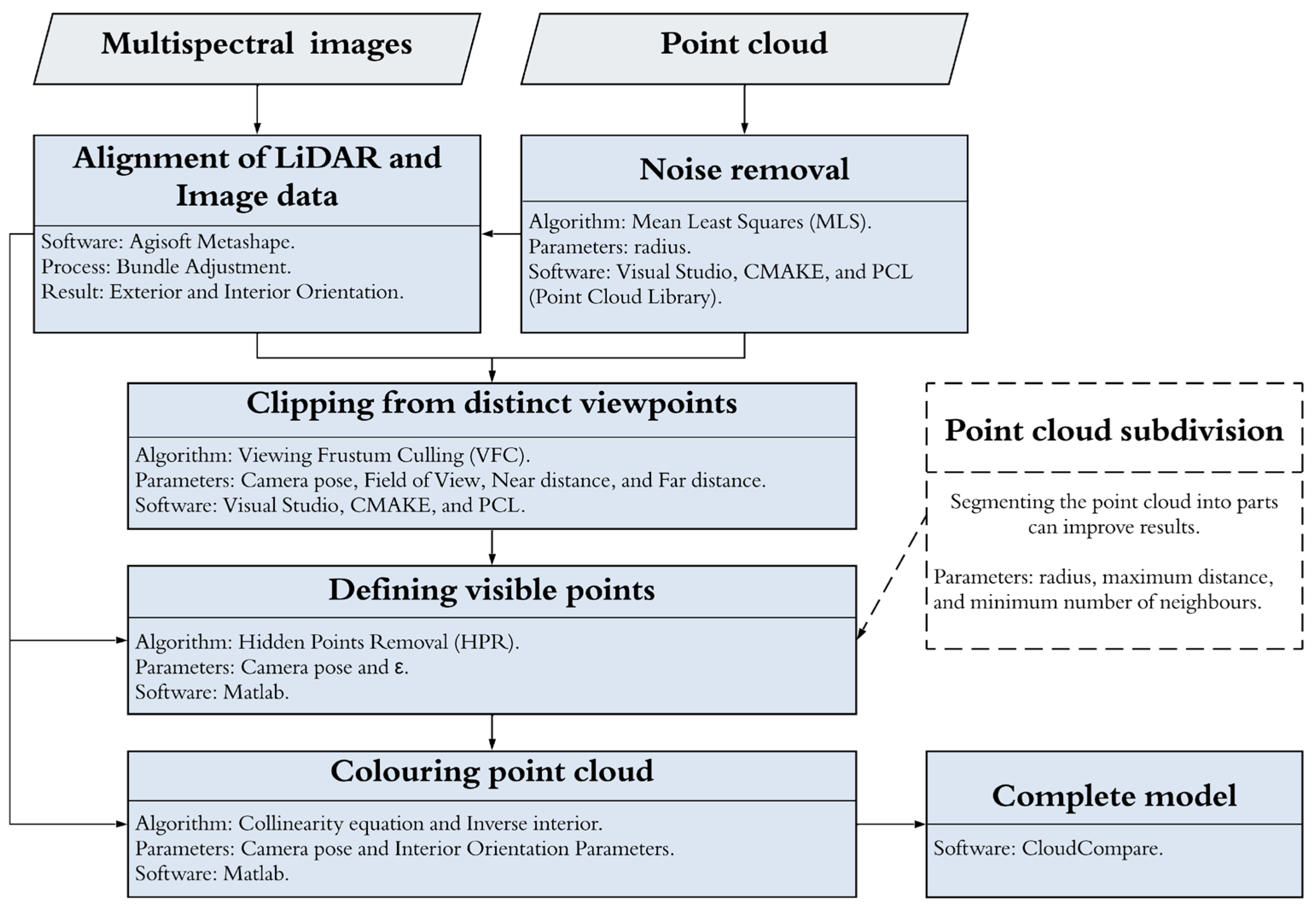 | LiDAR resolution (pt/m2) | 814 pt/m2 | 102.1 pt/m2, 203.9 pt/m2, 407.8 pt/m2 and 814 pt/m2 |