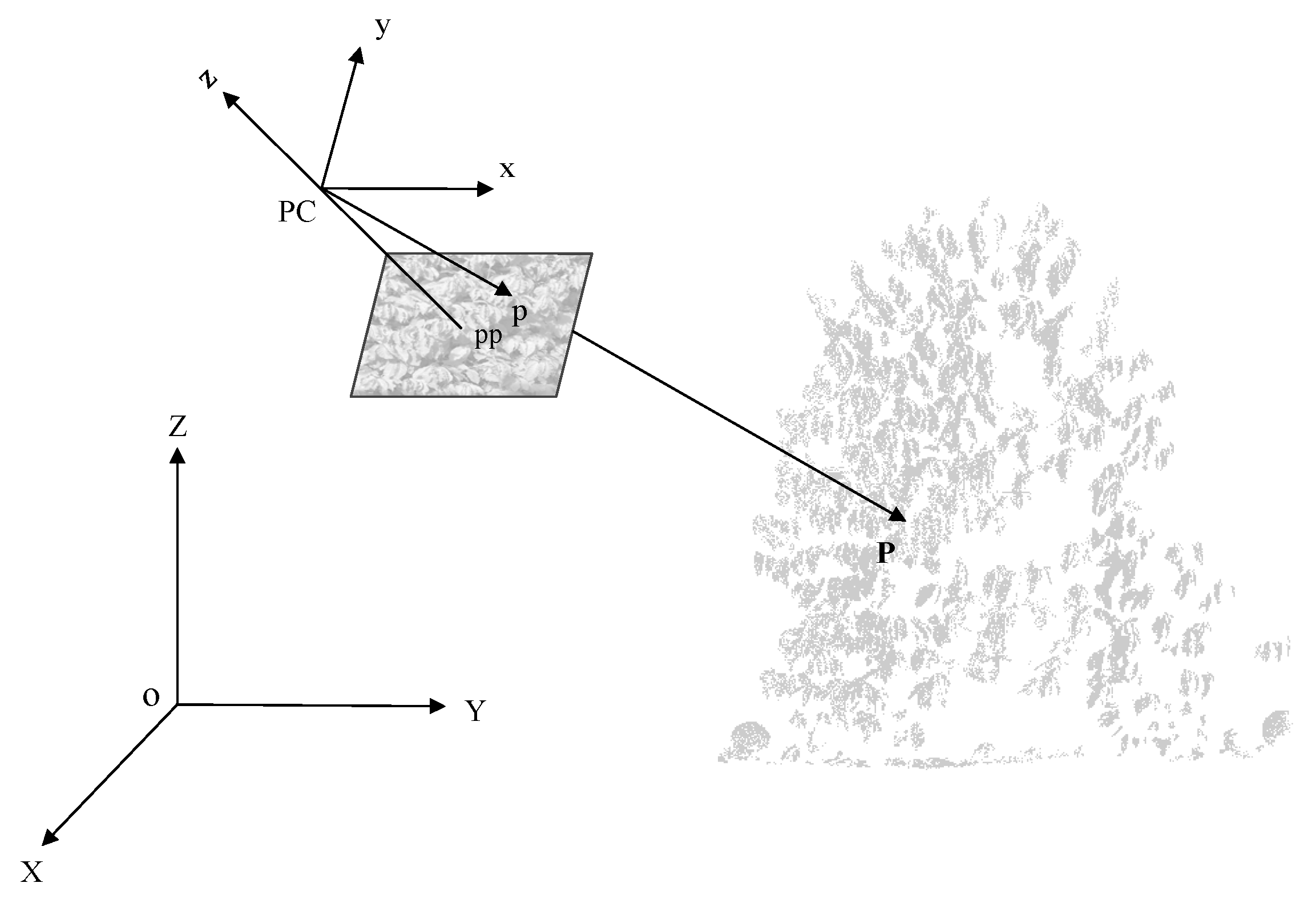 | Camera pose | Perspective centre | (X0, Y0 rotated by −90°, Z0) | Exterior orientation parameters |