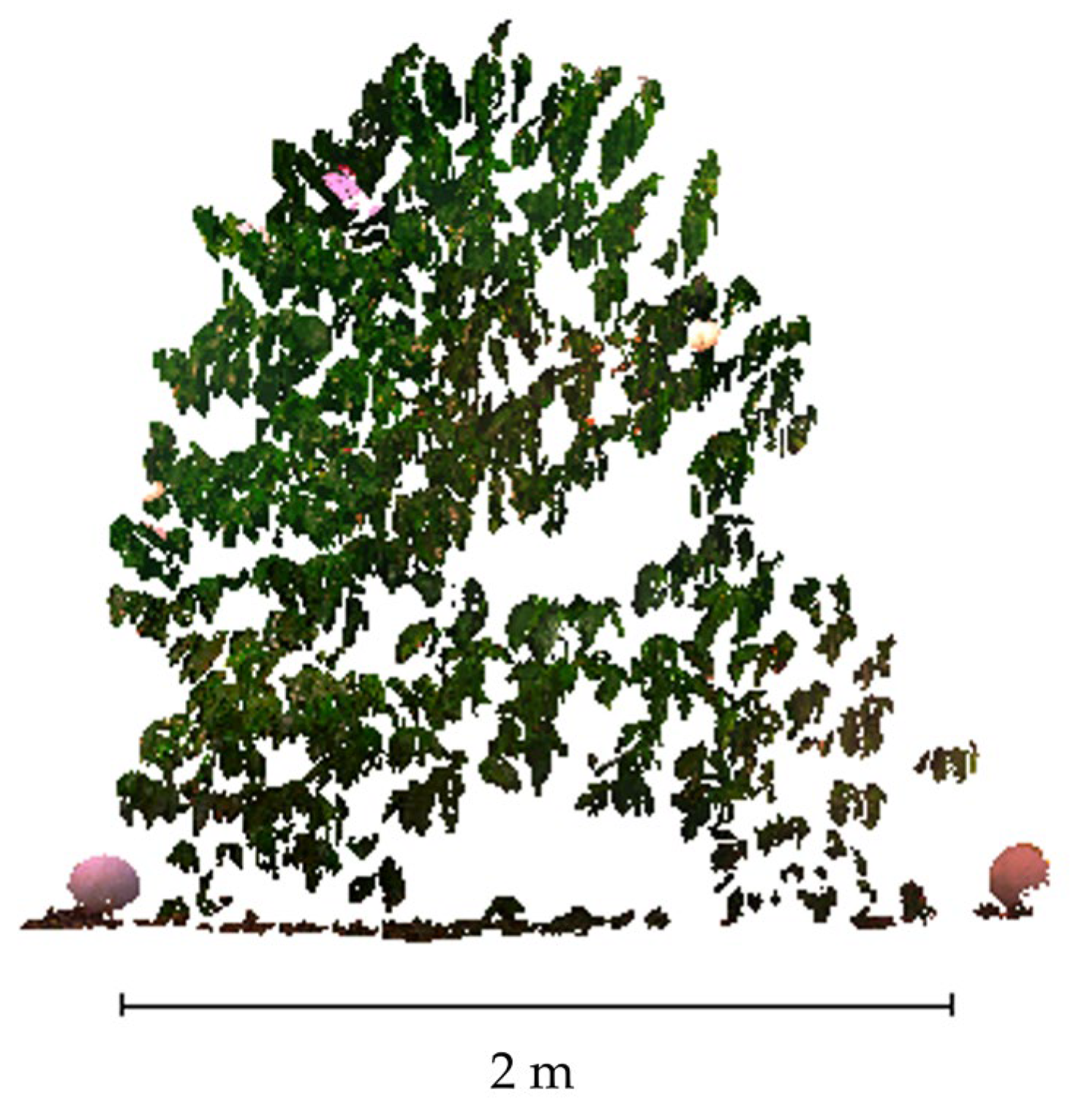 - Hu, F.; Lin, C.; Peng, J.; Wang, J.; Zhai, R. Rapeseed Leaf Estimation Methods at Field Scale by Using Terrestrial LiDAR Point Cloud. Agronomy 2022, 12, 2409. [Google Scholar] [CrossRef]