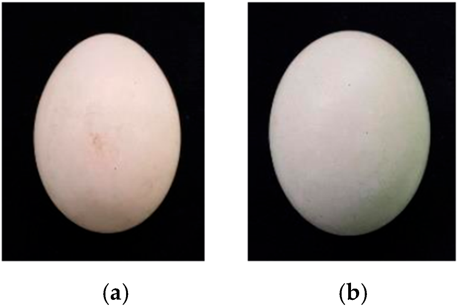 Therefore, this study aims to (1) develop a stationary optoelectronic setup integrating weight, geometry and image data; (2) design and validate image processing algorithms optimized for glossy and spotted shells; and (3) experimentally verify the correlation between automatic classification and manual measurements for Adigel duck eggs.