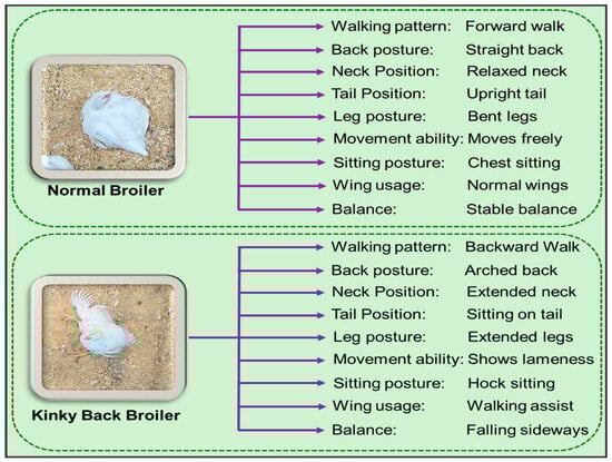 KB was first identified in Great Britain and subsequently reported in countries like Australia, Canada, the USA, and Germany [15,16,17]. It has been recognized as a global concern in the broiler production industry. The condition most frequently affects the fifth and sixth thoracic vertebrae between 3 and 6 weeks of age [9,18,19]. Clinical cases may affect only about 2% of the flock, and up to 60% of birds can be subclinically impacted, experiencing discomfort and mobility issues without visible symptoms [9,17]. This hidden prevalence complicates early intervention, as affected birds often go unnoticed until the condition worsens. In addition, detecting the early subclinical stage is difficult with standard observation methods. Difficulty in early detection underscores the need for advanced diagnostic tools to identify at-risk birds before symptoms progress.
