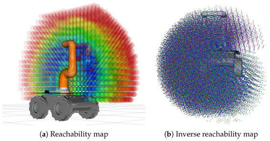 - Jeong, S.; Park, J.; Lee, D. Inverse Reachability Map Generation for Mobile Manipulators Based on Manipulability Analysis. Robot. Auton. Syst. 2021, 145, 103863. [Google Scholar]