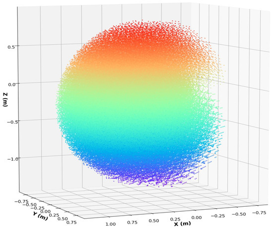 For each voxel center, multiple potential end-effector poses are generated to evaluate the manipulator’s accessibility. A Fibonacci Spiral Sphere sampling method is used to uniformly distribute poses across the surface of a unit sphere, avoiding clustering while maintaining consistent angular coverage. The longitude () and latitude () of each sampled pose are computed using the golden angle principle: