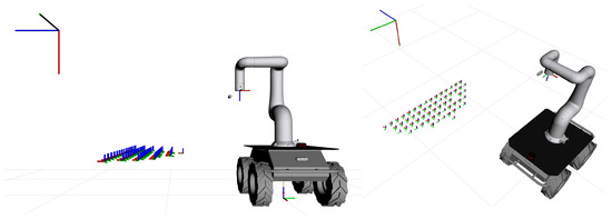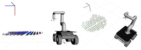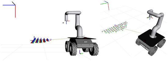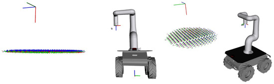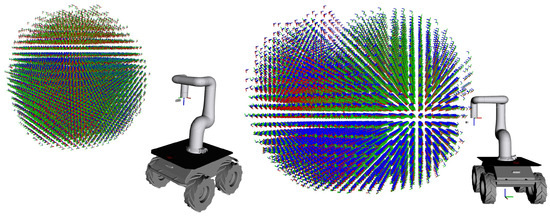 where r is the voxel radius and are the voxel center coordinates in the robot base frame. Figure 9 visualizes 50 uniformly distributed poses generated around each voxel center.