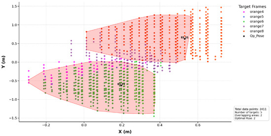 Building on this concept, the inverse reachability map (IRM) inverts the relationship by describing the possible base poses from which a given end-effector pose is reachable. An IRM was first applied to mobile manipulators by Stilman and Kuffner [21] for humanoid motion planning and was later adapted for agricultural robots by Zhou et al. [22]. By combining an RM and IRM, it becomes possible to determine optimal base positions for multi-target harvesting tasks and plan repositioning when targets are outside the current workspace.