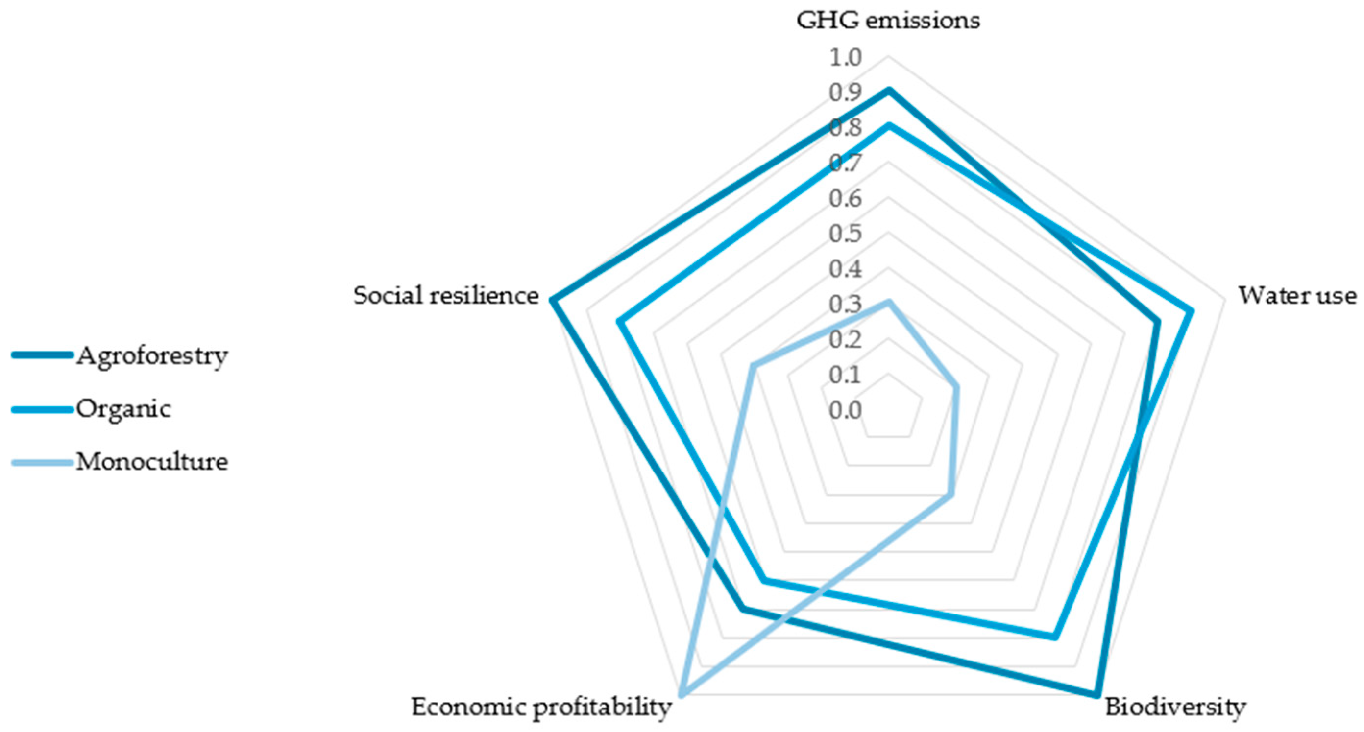 - Caicedo-Vargas, C.; Pérez-Neira, D.; Abad-González, J.; Gallar, D. Assessment of the environmental impact and economic performance of cacao agroforestry systems in the Ecuadorian Amazon region: An LCA approach. Sci. Total Environ. 2022, 849, 157795. [Google Scholar] [CrossRef]