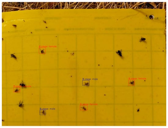 The olive tree (Olea europaea) is economically vital, especially in the Mediterranean [1]. In Spain, it covers 2.78 million hectares, representing 70% of the EU’s production. However, pests like the olive fruit fly B. oleae (Rossi) (Diptera: Tephritidae), which is considered the most damaging pest of olive production worldwide, cause significant economic losses by damaging fruit and oil quality and can affect up to 100% of the crop yield when infestations are not controlled [2,3,4]. Integrated Pest Management (IPM) has been mandatory in the EU, as established in the European Directive 2009/128/EC on the sustainable use of pesticides and reinforced by the European Green Deal, which aims to reduce pesticide dependency and promote sustainable agricultural practices [5]. To this end, one of the key fundamentals on which to build an IPM program is the availability of the economic injury level and economic threshold for intervention, which usually depend upon the monitoring of the insect pest populations, together with the selection of the most suitable control method [6,7]. The olive fruit fly IPM programs are based on adult trapping, which is considered the most effective and widely used method for monitoring the olive fruit fly population dynamics, to obtain reliable data for correct decision-making [7,8]. The development of increasingly precise, rapid, and cost-effective methods that require minimal field technician intervention is one of the great challenges of IPM, with technological innovations as key tools to overcome the limitations of traditional monitoring methods [9,10,11]. Thus, the integration of advanced technologies such as computer vision and machine learning into the detection and counting process emerges as a promising solution for olive fruit fly monitoring and management [9,12,13,14,15]. Computer vision enables machines to understand and process visual data, facilitating tasks such as object detection, and it continues to advance with the development of new algorithms [16]. However, the creation of reliable and accurate automated recognition systems largely depends on the availability of high-quality, representative datasets [9,15,17]. A major challenge is the absence of public and comprehensive olive fruit fly datasets, which limits the development of accurate and robust models for olive fruit fly detection [9,17].