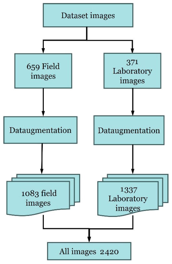 The augmentation process substantially increased the total volume and variability in the training data. Specifically, the field dataset expanded from 659 to 1083 images, and the laboratory dataset increased from 370 to 1337 images, resulting in a combined total of 2420 images. This threefold increase in data size enhanced model exposure to diverse visual patterns, helping to reduce overfitting and improve convergence stability during training.