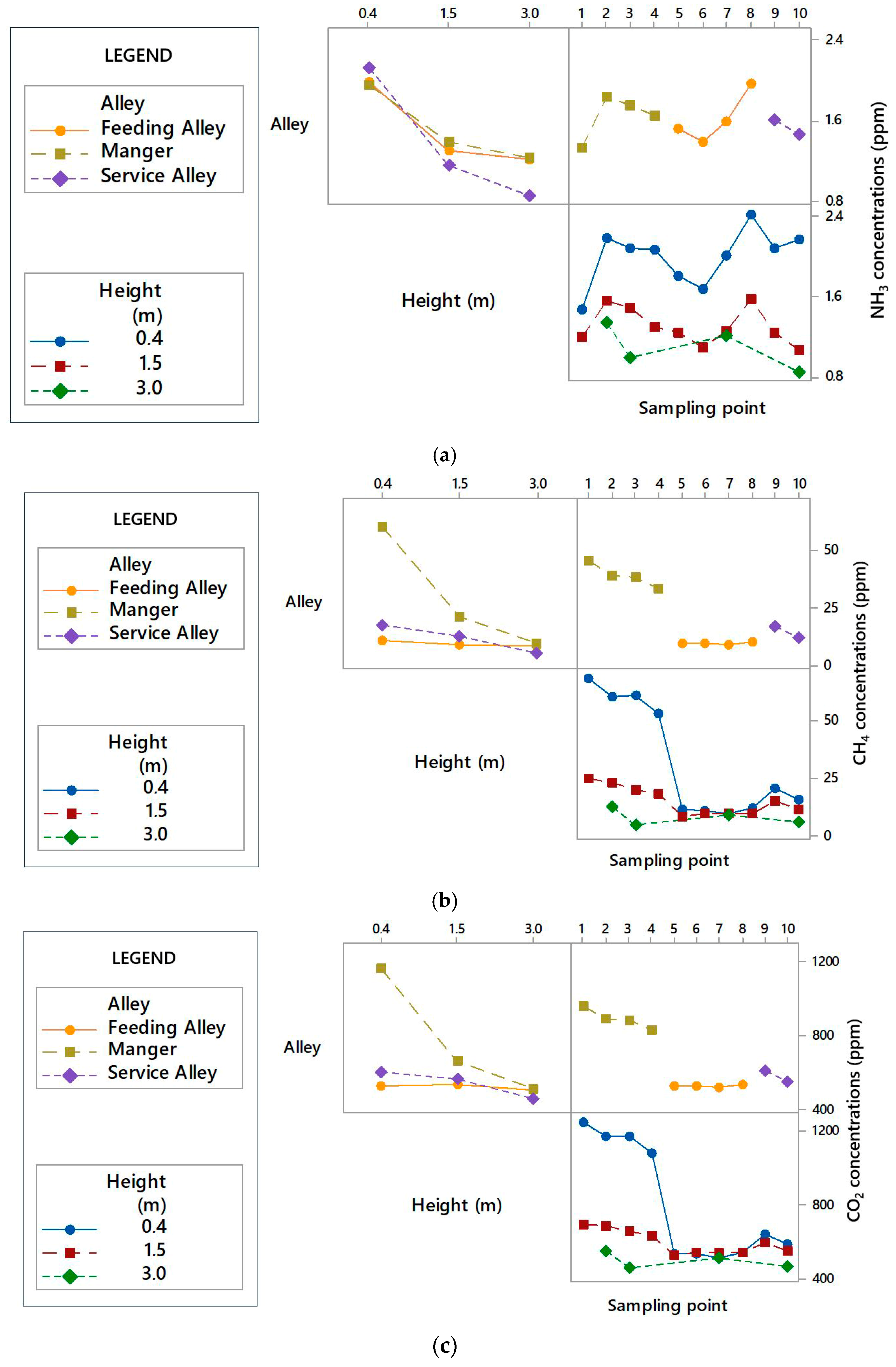 | Gas | Alley | Mean Value (ppm) | SD |