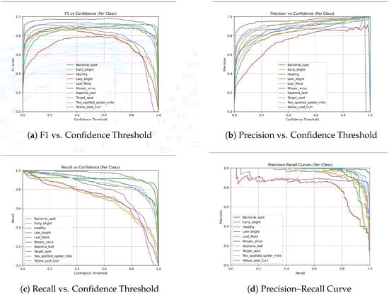 36], many of the results obtained on laboratory datasets are optimistic because they do not represent the full complexity of real-world scenarios. In contrast, the images in our field dataset were collected under genuinely heterogeneous cultivation conditions, including both greenhouses and open-field plots. Photographs were taken at different times of the day and therefore exhibit substantial variation in illumination, shadow patterns, and color temperature. In addition, many leaves have traces of pesticide residues, dust, water drops, or the presence of insects, and symptoms are often occluded by overlapping foliage or stems. These factors introduce complex background clutter and visual noise while altering the appearance and textures of symptoms. Even if data augmentation increases the number of training samples, it cannot replace the diversity contained in truly distinct real-world scenarios. Rotations, flipping, brightness adjustments, or zooming operations generate transformed versions of existing images, but do not introduce new biological or environmental variability. In our case, the field dataset contains a limited number of original images, particularly for minority classes such as Septoria, and these images already exhibit constrained symptom diversity. Since augmentation only reproduces variations along predefined transformation axes and cannot generate new disease manifestations, the ability of the model to generalize remains bounded by the limited diversity of the original dataset.
