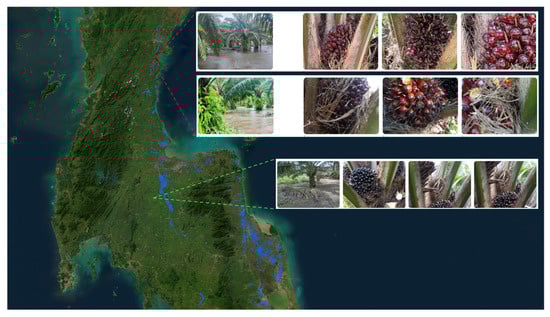 - Puttinaovarat, S.; Chai-Arayalert, S.; Saetang, W. Oil Palm Bunch Ripeness Classification and Plantation Verification Platform: Leveraging Deep Learning and Geospatial Analysis and Visualization. ISPRS Int. J. Geo-Inf. 2024, 13, 158. [Google Scholar] [CrossRef]