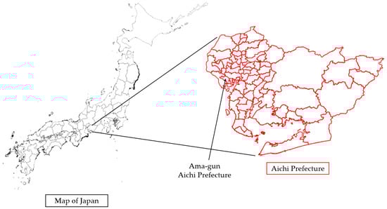 Based on these conditions, we developed an AI-discriminating camera that uses the machine learning You Only Look Once (YOLO) [3,4] to detect tomato objects and extract the size of the detected tomatoes from the image information. The size of the detected tomatoes was extracted from the image information. Additionally, from the image data, a color-based method was used to identify the degree of ripeness independent of light intensity. Figure 1 shows the overall system configuration using these mechanisms. The system was operated as shown in Figure 2, and a demonstration experiment was conducted using the actual work of the harvester and the manual operation procedure of the developed system. The experimental site was located in Ama-gun, Aichi Prefecture, Japan, and the experimental tomato variety was “Karen” and was grown in a greenhouse. Figure 3 shows an overall map of Japan and an enlarged map of Aichi Prefecture where the experiment was conducted. The area indicated by the arrow is Ama-gun. The grower harvests tomatoes in the field by loading the containers onto a cart. The cart was equipped with an AI identification camera that collected image data when the tomatoes were harvested. These image data were used to predict harvest several weeks later. The image data were transferred to an external network cloud via Wi-Fi. The cloud data were analyzed to predict the yield.