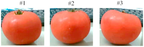 Three randomly sized tomatoes were prepared for accurate volumetric measurements, as shown in Figure 17. Table 5 lists the accuracies of each volumetric measurement. As shown in Table 5, tomatoes #1 and #2 have error rates of approximately 5% and 9%, respectively, whereas tomato #3 has an error rate of approximately 26%. This is because the shapes of tomatoes #1 and #2 are generally elliptical, so the edges can be detected. However, tomato #3 is slightly tilted and distorted compared with tomatoes #1 and #2, as shown in Figure 17.