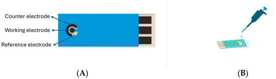 28]. An SPE typically consists of a chemically inert substrate on which three electrodes are screen-printed (a working electrode, a reference electrode, and a counter electrode) [