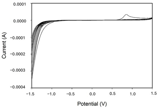 Figure 4. Therefore, the electrodes were first pretreated by cycling a potential window between −1.5 V and 1.5 V at a scan rate of 100 mV/s in 0.1 M H