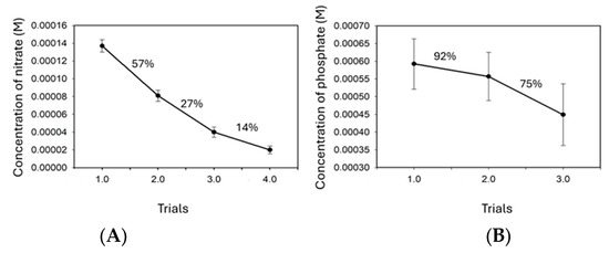 35]. Moreover, in the beach soil, the phosphate concentration was 180 µM during the first wash and showed gradual reduction in the subsequent washes. This implies that phosphate exhibits strong adsorption with the soil particles in the presence of soil minerals, organic matter, and other free metal ions [