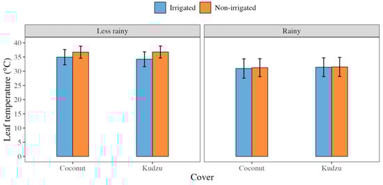 Leaf temperature in green dwarf coconut and tropical kudzu during the rainy and dry seasons under the climatic conditions of the Eastern Amazon, Brazil.