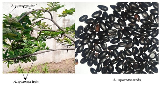 Annona squamosa (A. squamosa), also known as custard apple or sweetsop, is a tropical fruit commonly found in regions of Africa, Asia, and the Americas. The fruit is one of the families of Annonaceae plant, genus Annona, class magnoliopsida and, species Annona [4]. A. squamosa has different cultivars like pale-green, red and pink-bluish with similar characteristics [5]. Moreover, the pale-green cultivar that is used in this study is commonly found in the tropical region of Africa and produces seeds rich in oil content (23–25% per 100 g) [6]. The prevailing fatty acids present in A. squamosa seed oil are oleic with 49.75%, linoleic, 22.50%, palmitic, 15.06%, and stearic, 4.63%, thus, making the seed oil suitable as potential feedstock for biodiesel synthesis [5,7]. Despite the potential of A. squamosa seed oil to serve as valuable feedstock for biodiesel production, the seeds are often discarded as agricultural waste [6].