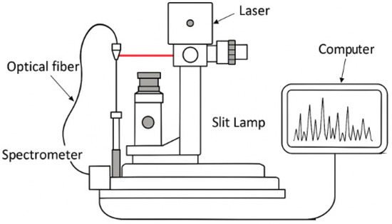 To capture the LIBS spectra, each leaf sample was placed on a glass microscope slide and irradiated with laser pulses. Each pulse generated a localized plasma, allowing the capture of a single spectrum per shot. Both the plasma formation and the resulting microcavity were visually verified through the microscope. To ensure accurate measurements, each laser shot was performed in a different area, preventing the formation of larger perforations that could alter the laser fluence. The experimental setup used for LIBS analysis is illustrated in Figure 9, detailing the optical arrangement, laser system, and detection components employed for spectral acquisition.