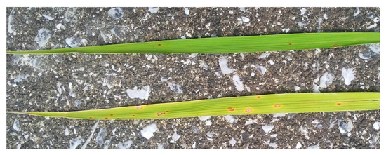 In general, leaf color can also change depending on the nitrogen status; therefore, the above indicators may include the effects of nitrogen deficiency [34]. In this study, it was assumed that there was no significant amount of nitrogen deficiency because the paddy fields used for collecting the training data were cultivated and managed by a farmer.