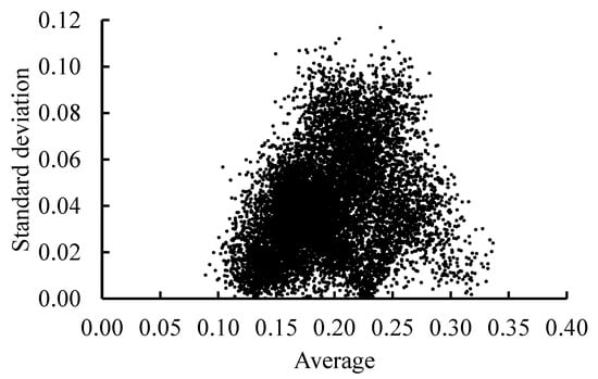Figure 9 shows the relationship between the average and standard deviation of the estimated sterility rate over the three years. For an average sterility rate of 0.20 or less, a trend of smaller standard deviations for lower sterility rates was observed (R = 0.43), whereas for average sterility rates of 0.25 or more, a trend of smaller standard deviations for higher sterility rates was observed (R = 0.40).