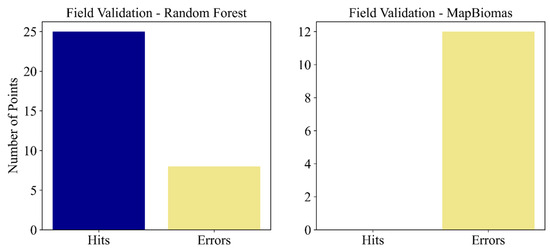 3.2. On-Site Validation of the Accuracy of the Random Forest and MapBiomas Models for Agriculture Classification