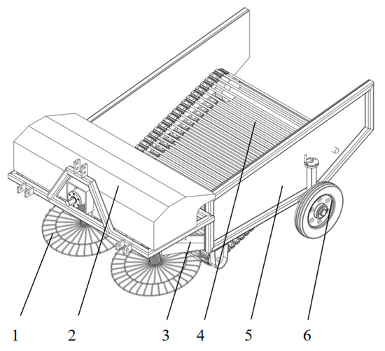 - Fan, X. Design and Experimental Study on Picking Performance of Spring-Tooth Type Potato Pickup. Master’s Thesis, Inner Mongolia Agricultural University, Hohhot, China, 2022. [Google Scholar] [CrossRef]