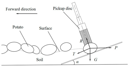 Force analysis between the potato–soil mixture and the pickup disc.