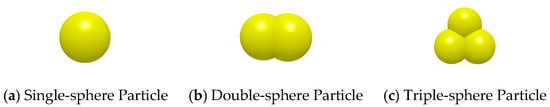 In potato pickup operations, the soil post-excavation is loose with minimal large clods and no compaction or adhesion. To ensure simulation accuracy while maintaining computational efficiency, soil particles were modelled at a size of approximately 5 mm; three differently shaped particles were selected to simulate the actual shapes of soil particles as illustrated in Figure 6.